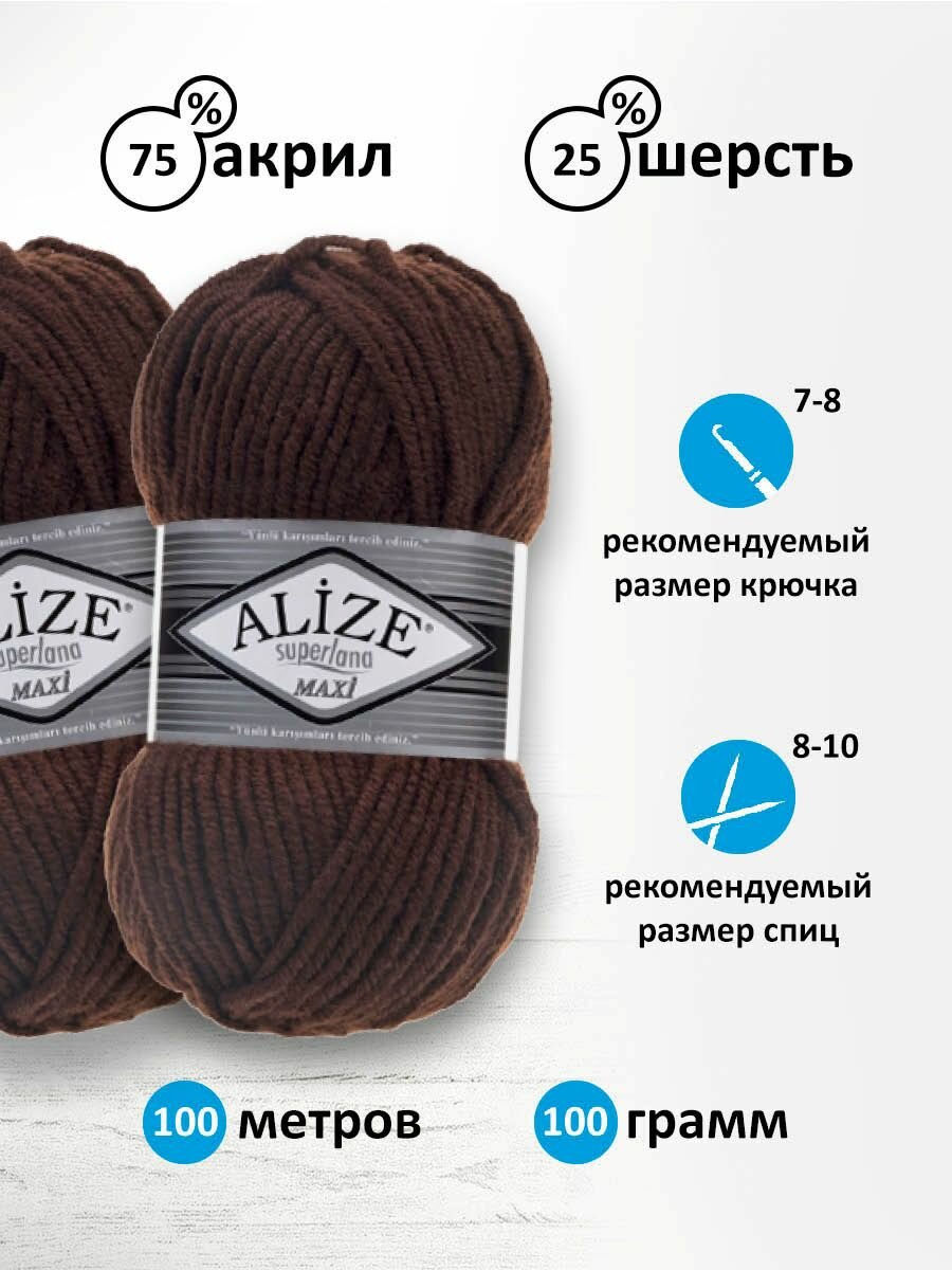 Пряжа ALIZE SUPERLANA MAXI, коричневый - 26, 25% шерсть, 75% акрил, 5 мотков, 100 г, 100 м.