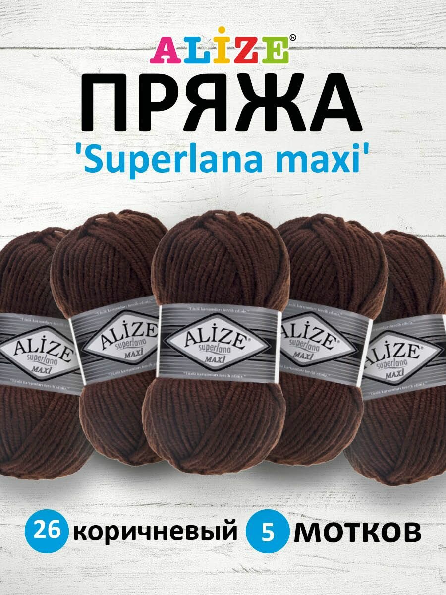Купить Пряжа для вязания ALIZE 'Superlana maxi', 100г, 100м (75% акрил, 25% шерсть), ТУ (26 коричневый), 5 мотков