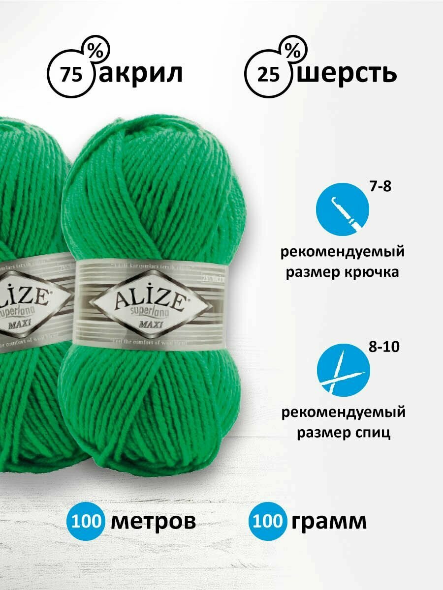 Пряжа для вязания Alize Superlana Maxi, цвет 455 яркий зеленый, 100г, 100м, 5шт/упак