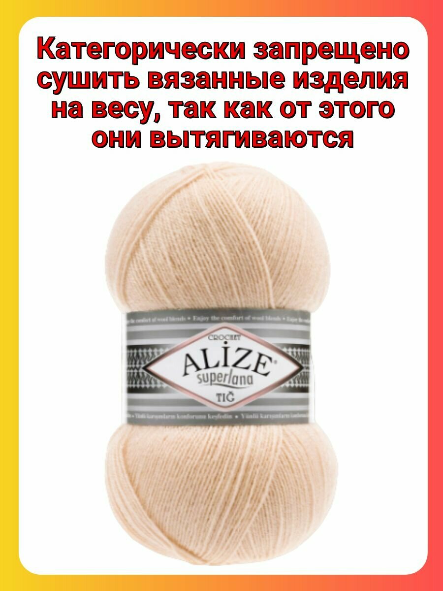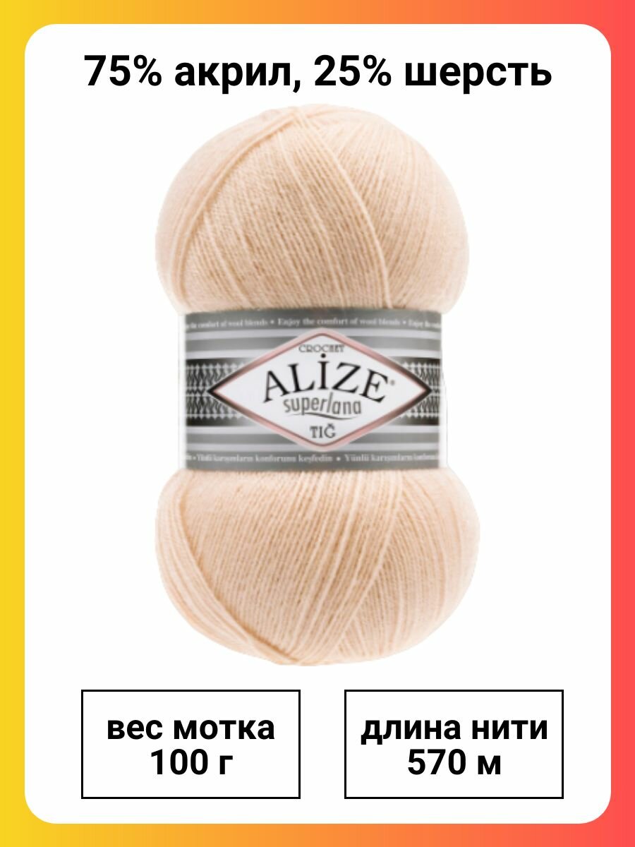 СохранитьПряжа Alize Superlana Tig 681 светлый персик, 100 г, 570 м, 5 штук интересное: