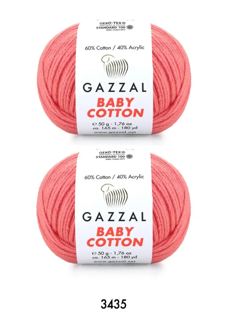 Пряжа Gazzal Baby Cotton (Газзал Беби Коттон) - 2 мотка Розовый коралл (3435) 60% хлопок, 40% акрил 165м/50г