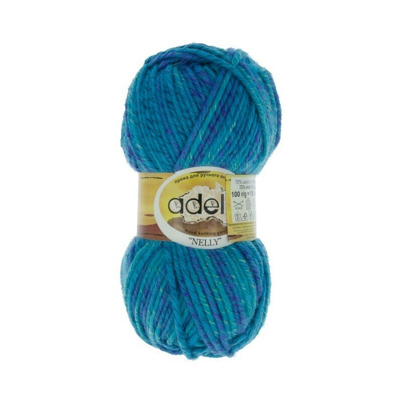 Пряжа ADELIA "NELLY" 70% шерсть, 30% акрил 100 г 100 м №12 синий-т. бирюзовый