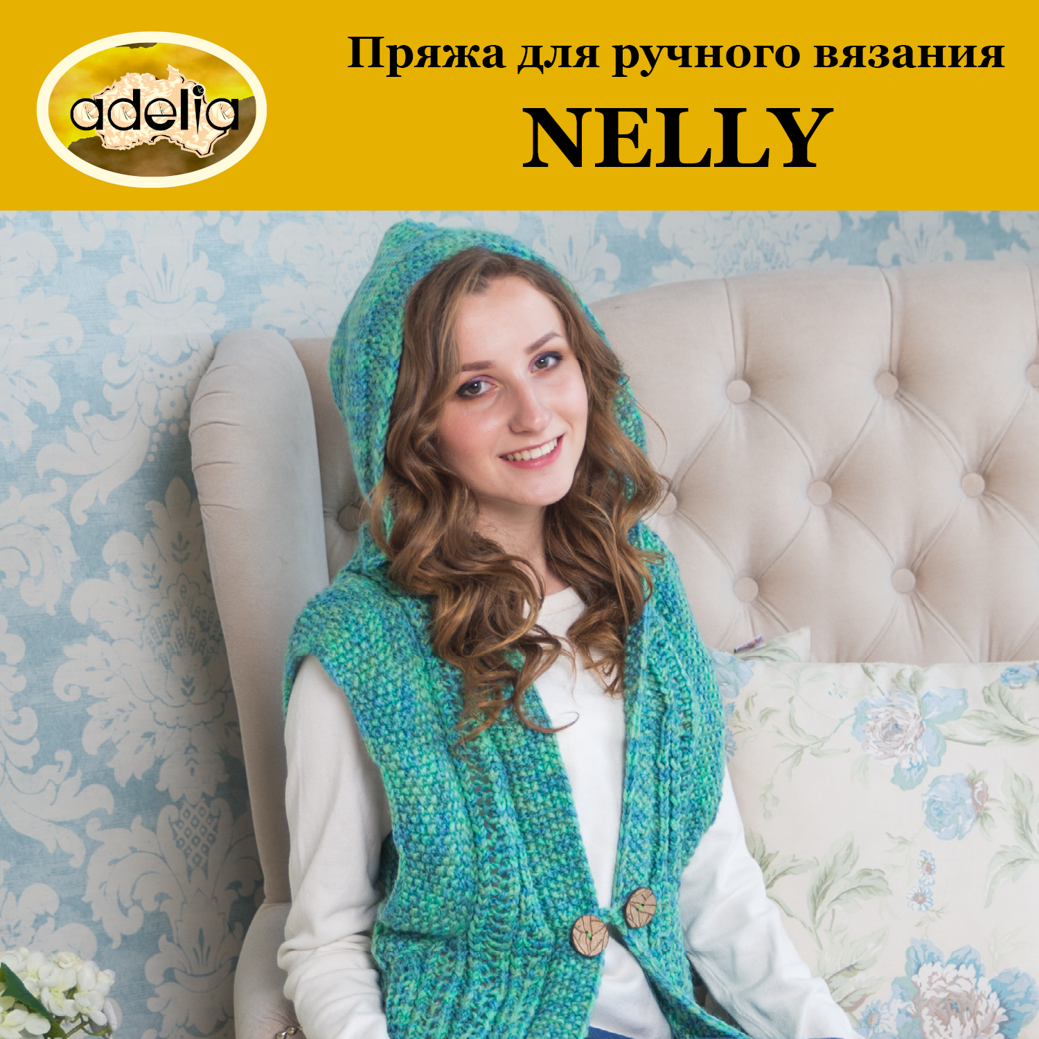 Пряжа Adelia "NELLY", 5 шт. по 100 г, набор, 70% шерсть, 30% акрил 100 м №10 зеленый-св. синий