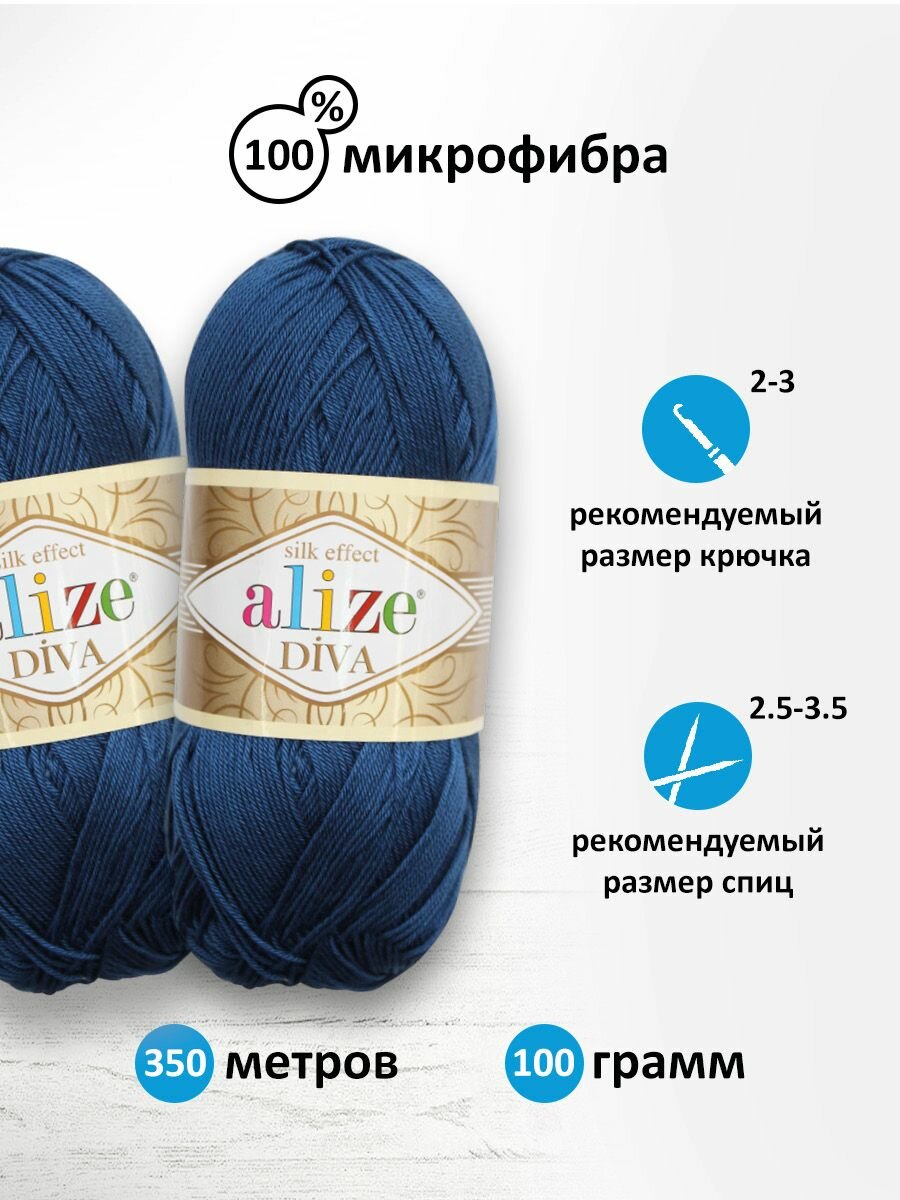 Пряжа ALIZE "Diva", 100 г, 350 м, 100% микрофибра, цвет 361 темно-синий, 5 мотков