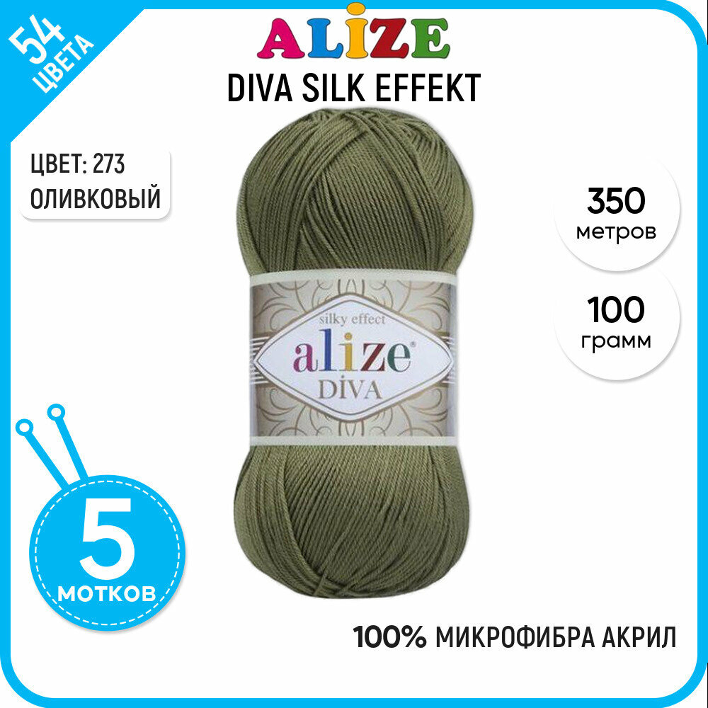 Пряжа Alize Diva хаки (273), 100%микрофибра, 350м, 100г, 5шт