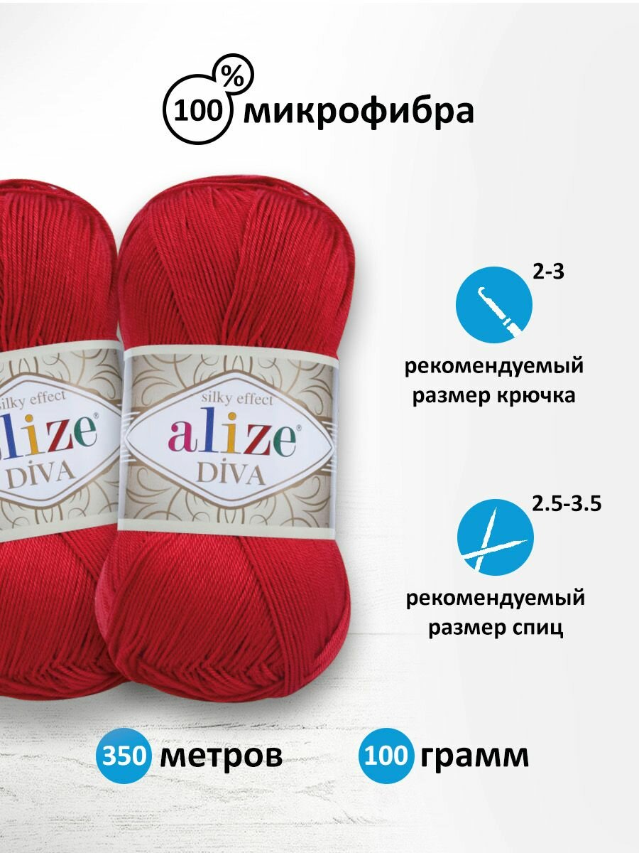 Купить Пряжа Alize Diva красный (106), 100%микрофибра, 350м, 100г, 5шт