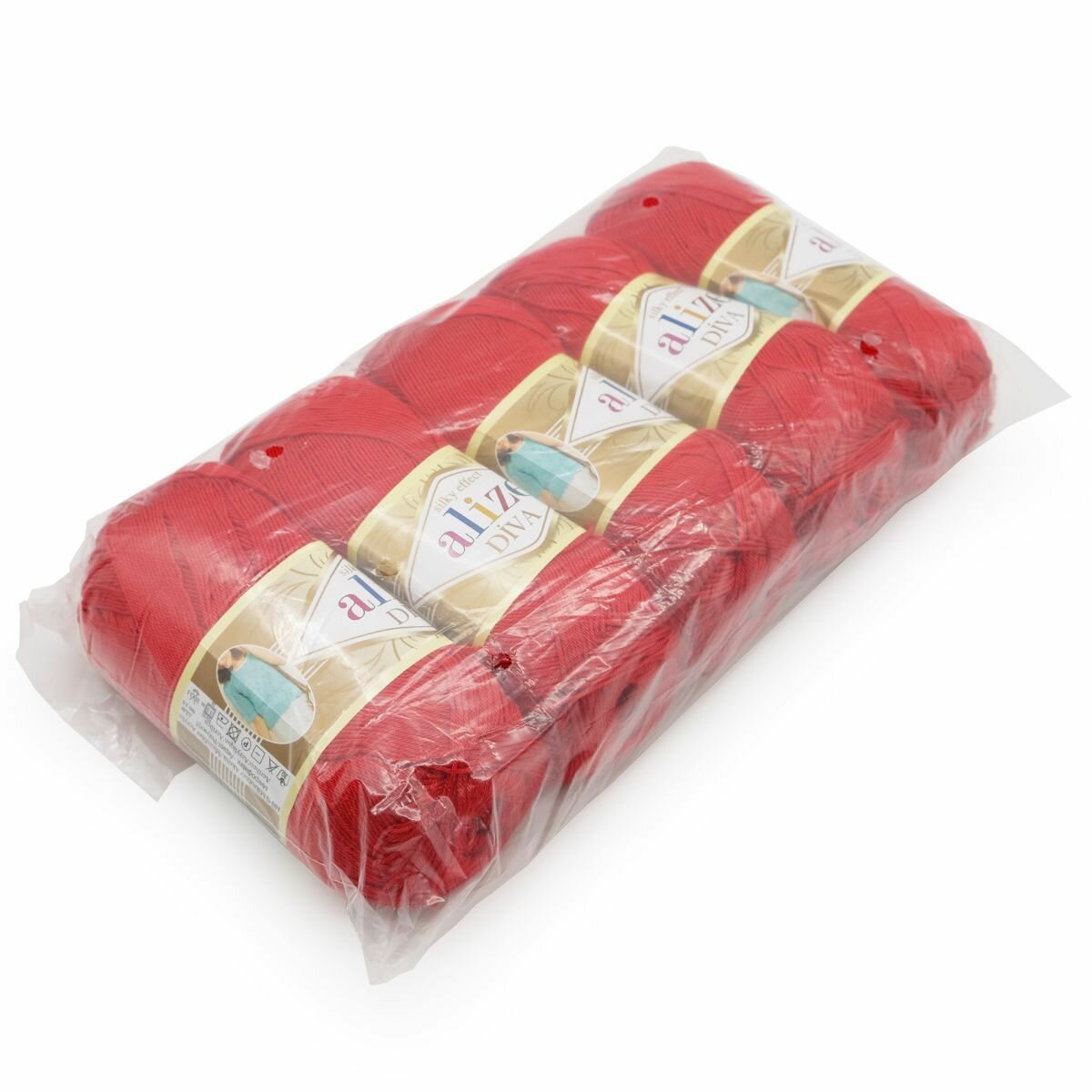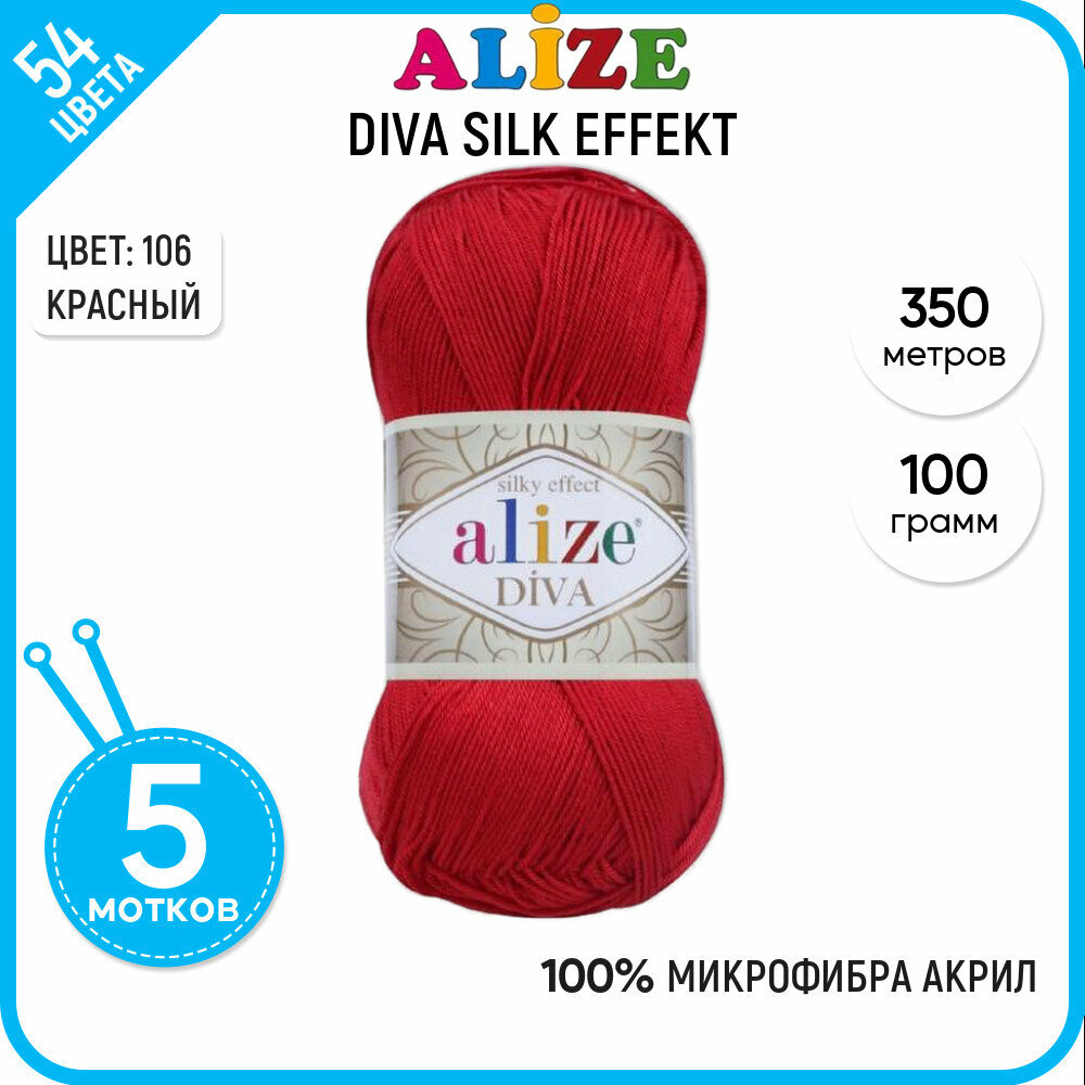 Пряжа ALIZE DIVA, красный - 106, 100% микрофибра акрил, 5 мотков, 100 г, 350 м.