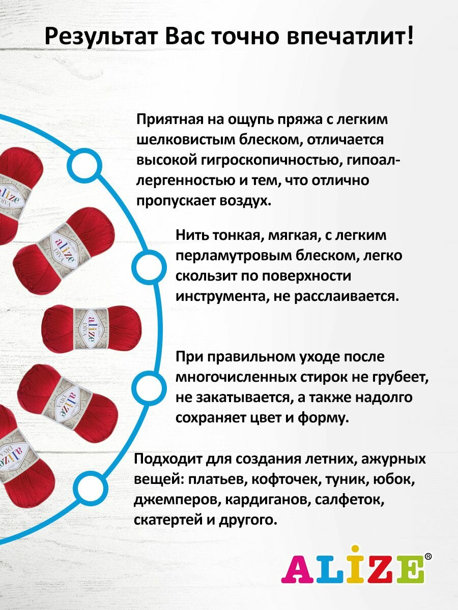СохранитьПряжа Alize Diva красный (106), 100%микрофибра, 350м, 100г, 5шт интересное: