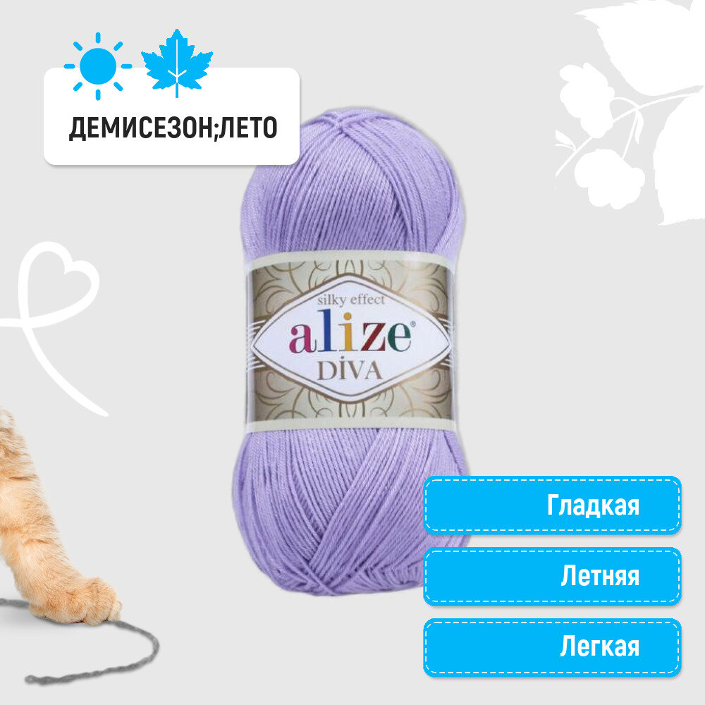 Купить Пряжа Alize Diva сирень (158), 100%микрофибра, 350м, 100г, 5шт