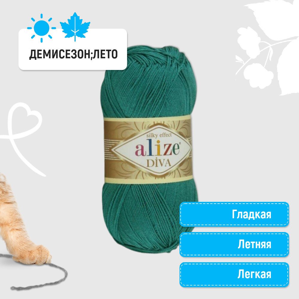 Пряжа Alize Diva нефрит (610), 100%микрофибра, 350м, 100г, 5шт