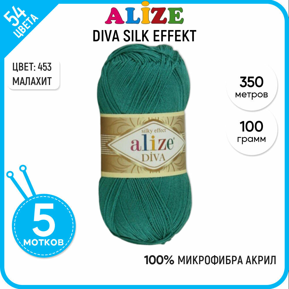 Купить Пряжа Alize Diva морская волна (453), 100%микрофибра, 350м, 100г, 5шт