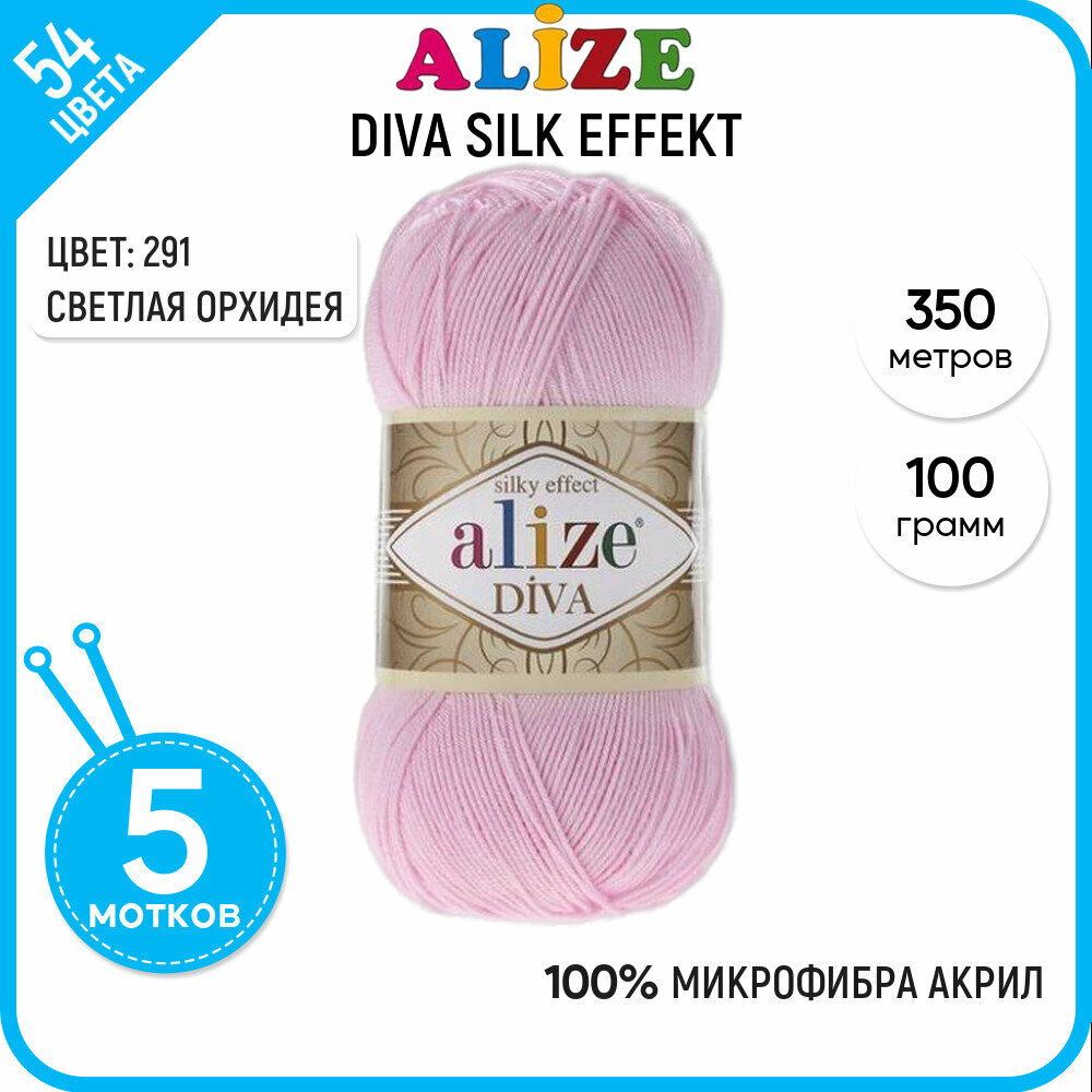 Пряжа ALIZE DIVA, светло-розовый - 291, 100% микрофибра акрил, 5 мотков, 100 г, 350 м.
