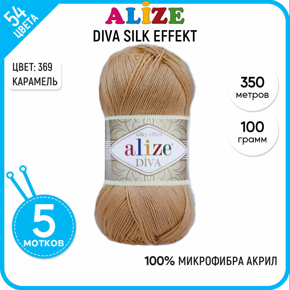 Купить Пряжа Alize Diva карамель (369), 100%микрофибра, 350м, 100г, 5шт