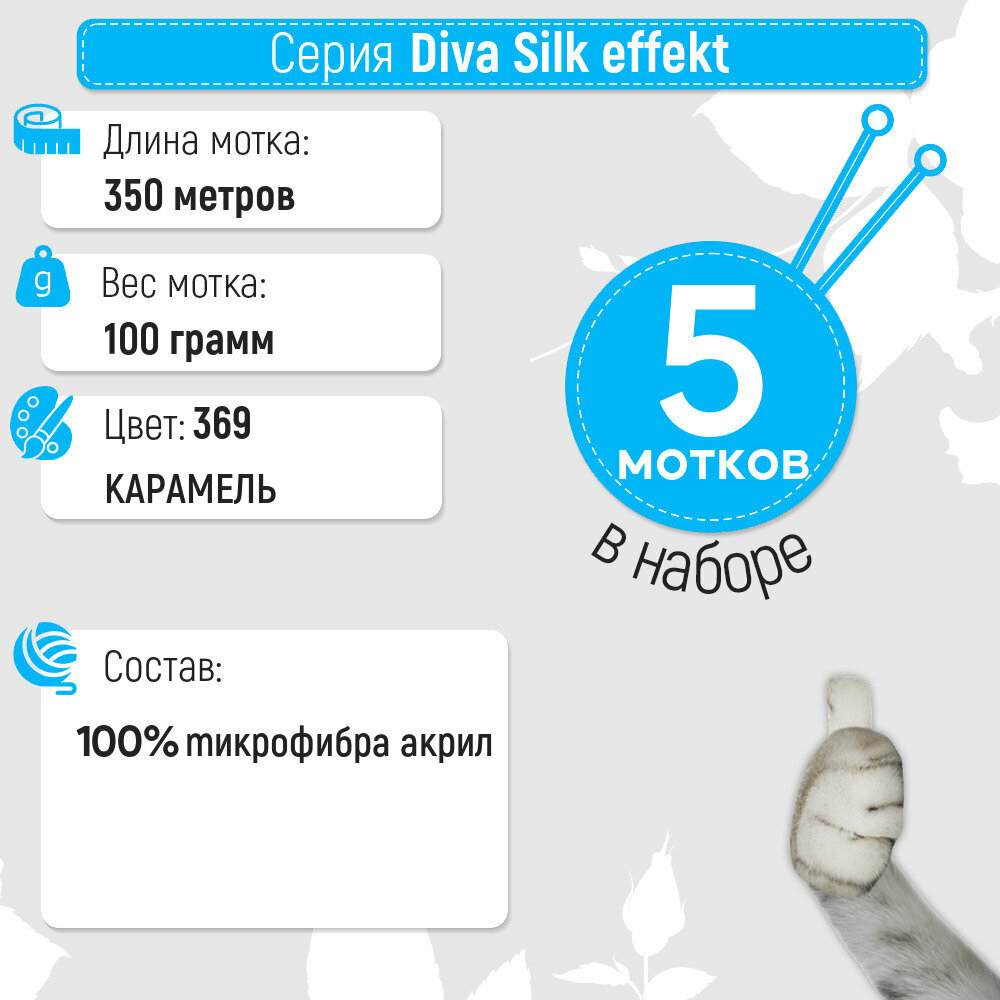 Пряжа Alize Diva Silk effekt (369 карамель), 5 шт. по 100 г, Alize
