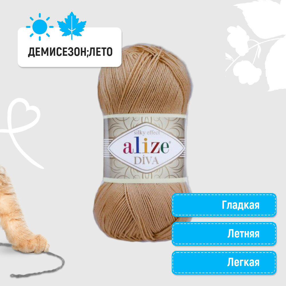 Пряжа Alize Diva - 1 шт,394 топленое молоко, 350м/100г, 100% микрофибра акрил /Ализе Дива/