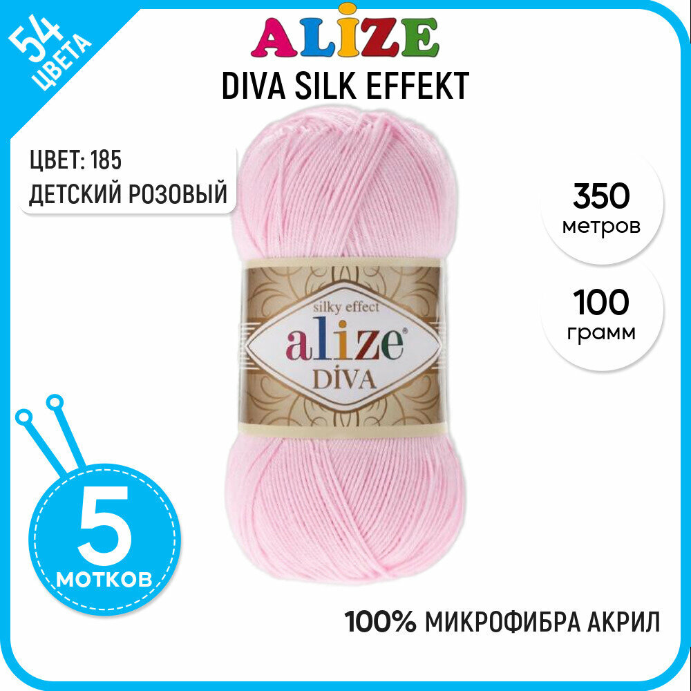 Пряжа Alize Diva Silk effekt (185 детский розовый), 5 шт. по 100 г, Alize