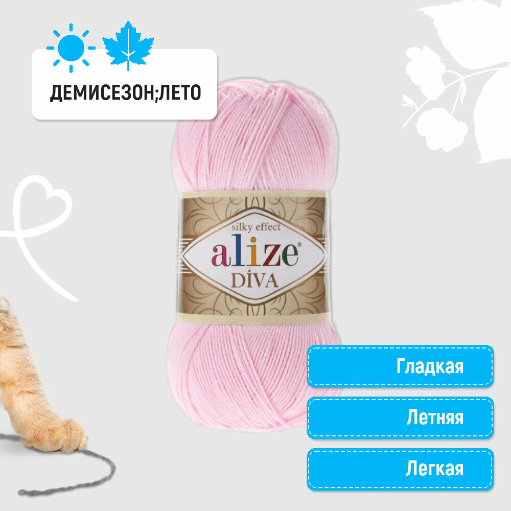 Пряжа ALIZE DIVA, светло-розовый - 291, 100% микрофибра акрил, 5 мотков, 100 г, 350 м.