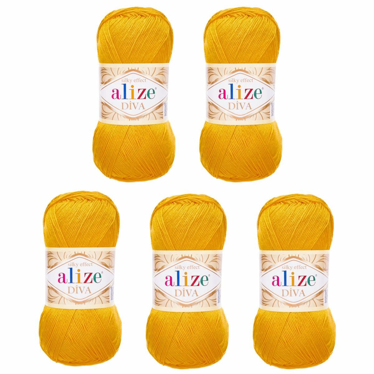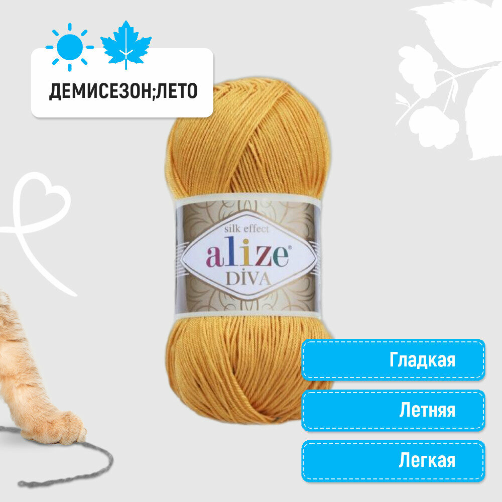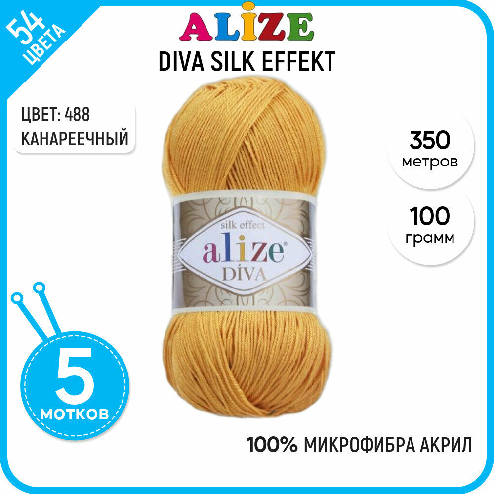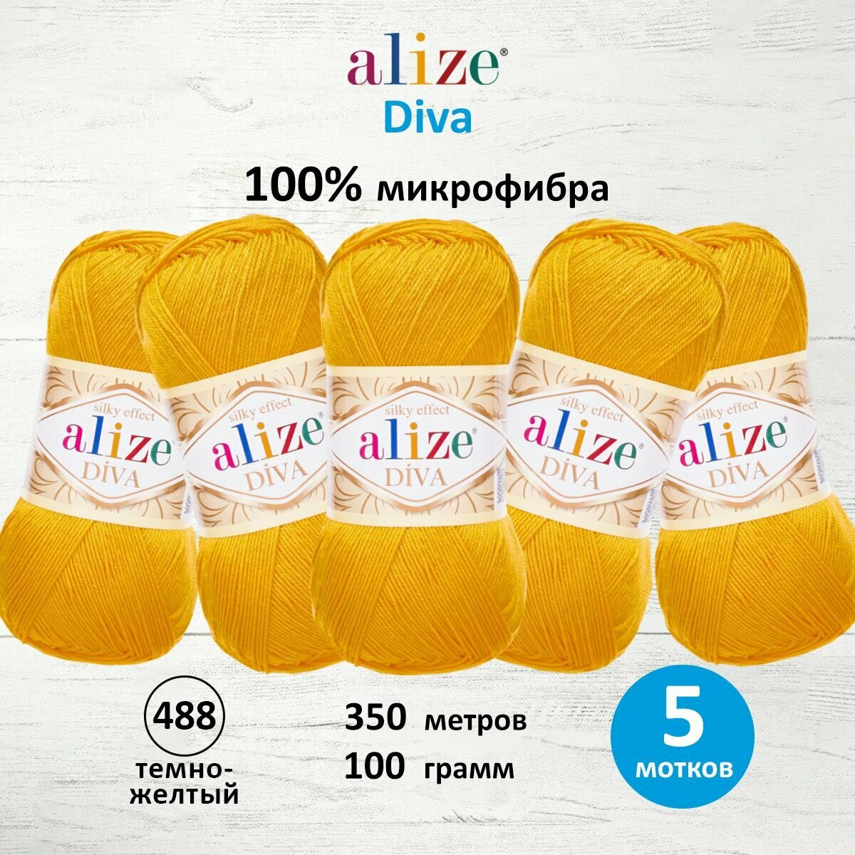 Купить Пряжа Alize Diva темно-желтый (488), 100%микрофибра, 350м, 100г, 5шт