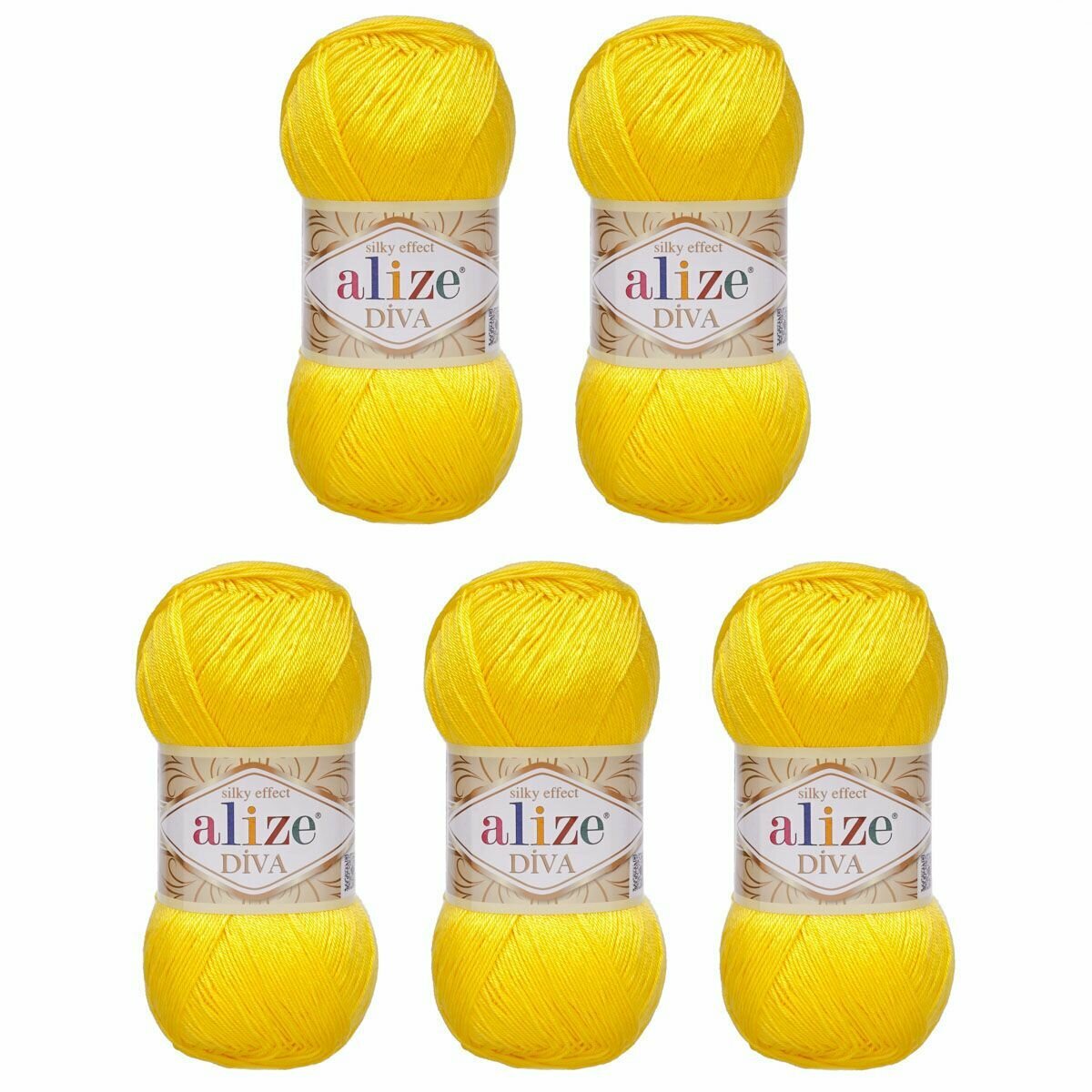Пряжа ALIZE DIVA, светлый лимон - 187, 100% микрофибра акрил, 5 мотков, 100 г, 350 м.