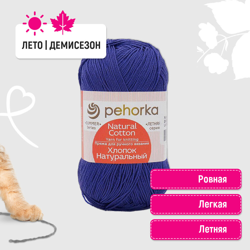 Пряжа Пехорка Хлопок натуральный темно-фиолетовый (698), 100%хлопок, 425м, 100г, 1шт