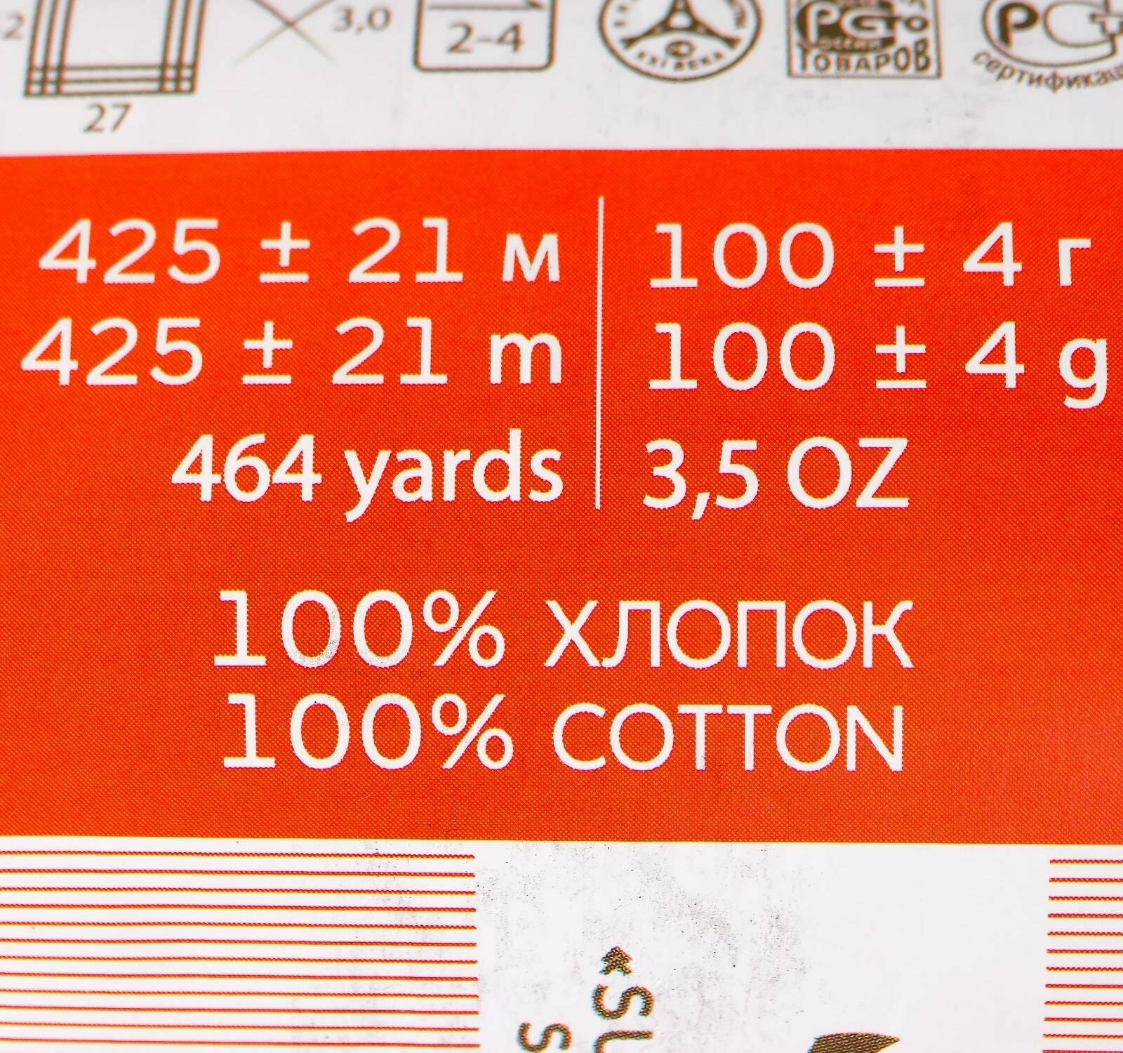 Пряжа Пехорка Хлопок Натуральный, 100 % хлопок, 100 г, 425 м, 1 шт, 59