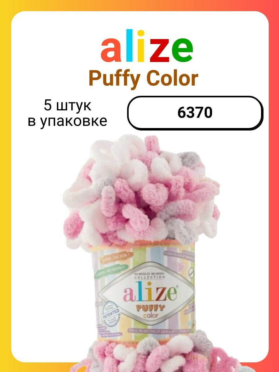 Пряжа для вязания плюшевая с петельками Alize Puffy Color, цвет 6471, 100г, 9м, 5 шт/упак