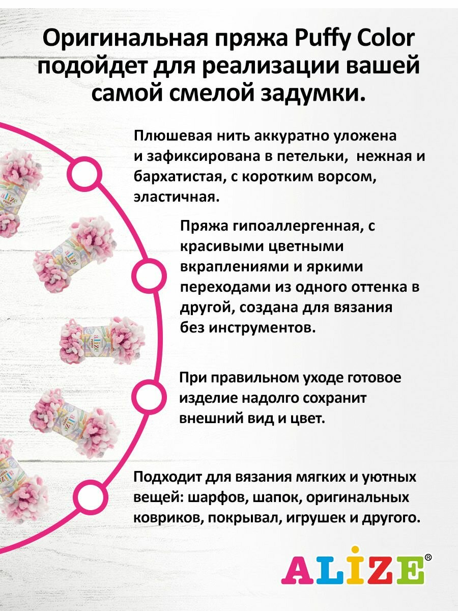 Пряжа PUFFY COLOR (Alize), сирен/розовый - 6305, 100% микрополиэстер, 5 мотков, 100 г, 9 м.