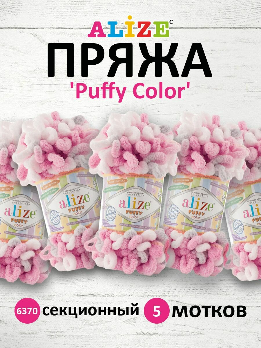 Пряжа для вязания ALIZE 'Puffy Color', 100г, 9м (100% микрополиэстер) (6491 секционный), 5 мотков