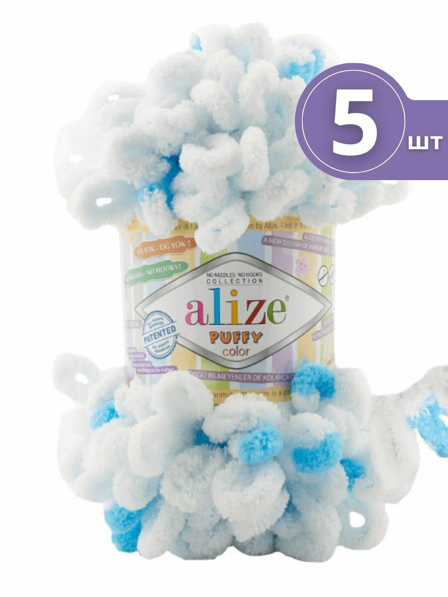 Пряжа PUFFY COLOR (Alize), бело-голубой - 5865, 100% микрополиэстер, 5 мотков, 100 г, 9 м.