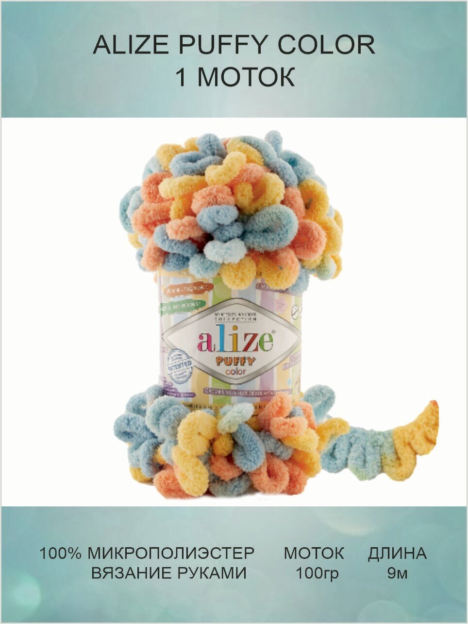 Купить Пряжа Alize Puffy color коралловый-желтый-голубой (6314), 100%микрополиэстер, 9м, 100г, 1шт