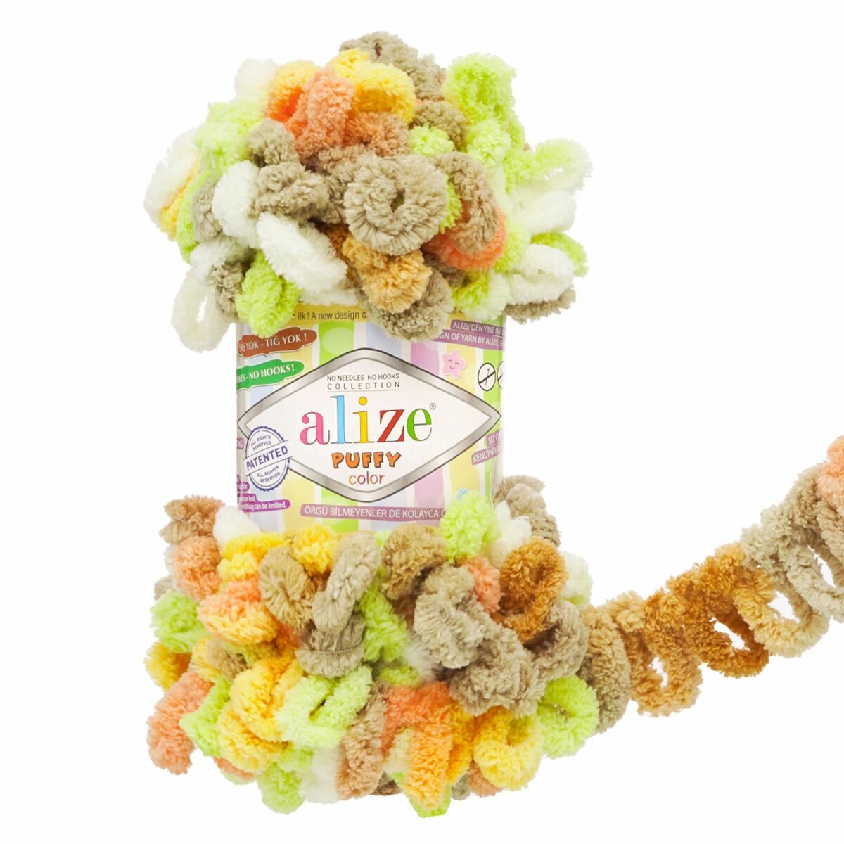 Купить Пряжа для вязания руками с петлями ALIZE 'Puffy Color' 100г, 9м (6528 секционный), 5 мотков