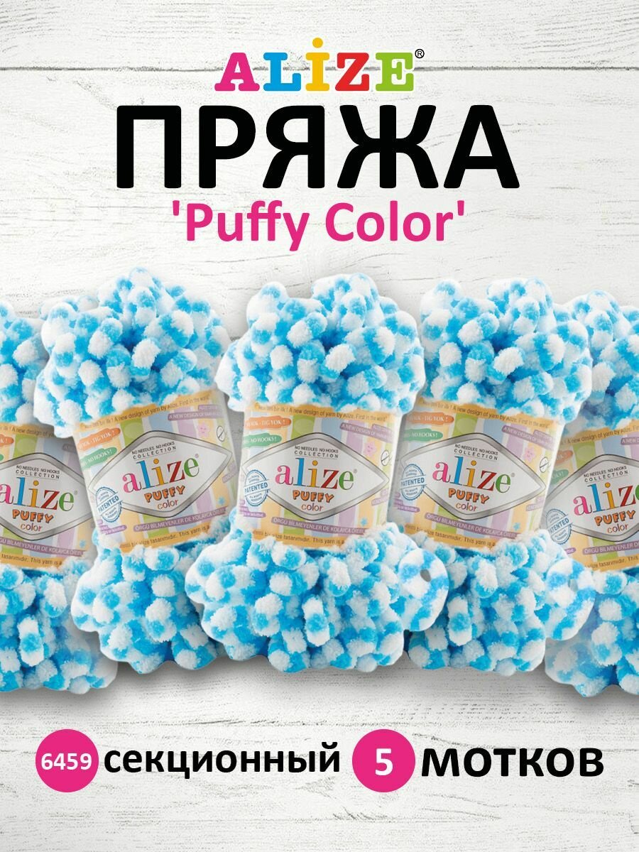 Пряжа PUFFY COLOR (Alize), бело-голубой - 5865, 100% микрополиэстер, 5 мотков, 100 г, 9 м.