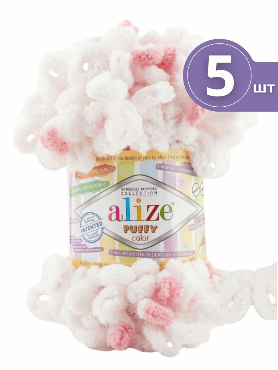Пряжа PUFFY COLOR (Alize), розово-белый - 5863, 100% микрополиэстер, 5 мотков, 100 г, 9 м.