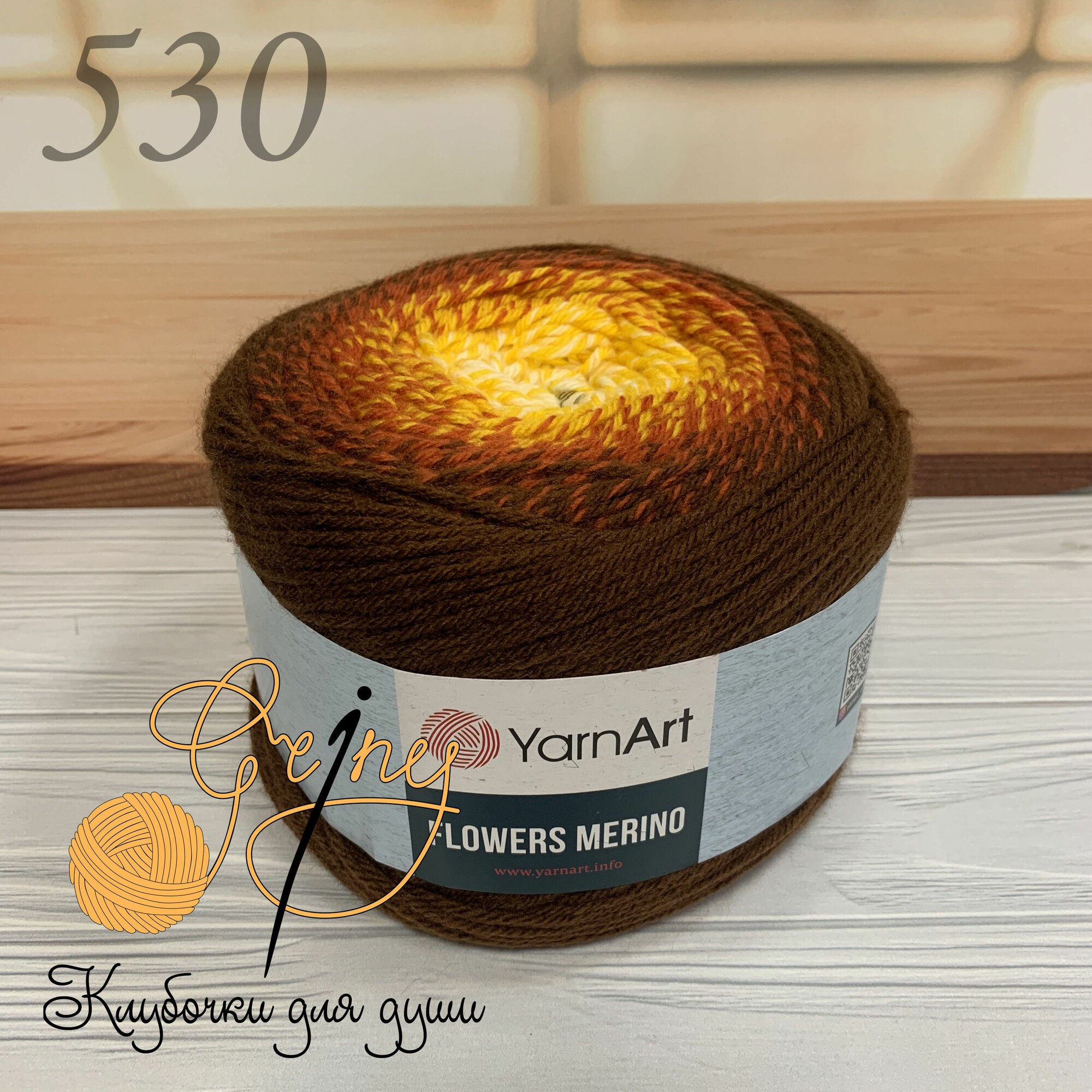 СохранитьПряжа Yarnart Flowers Merino коричневый-оранжевый-желтый (530), 25%шерсть/75%акрил, 590м, 225г, 1шт интересное: