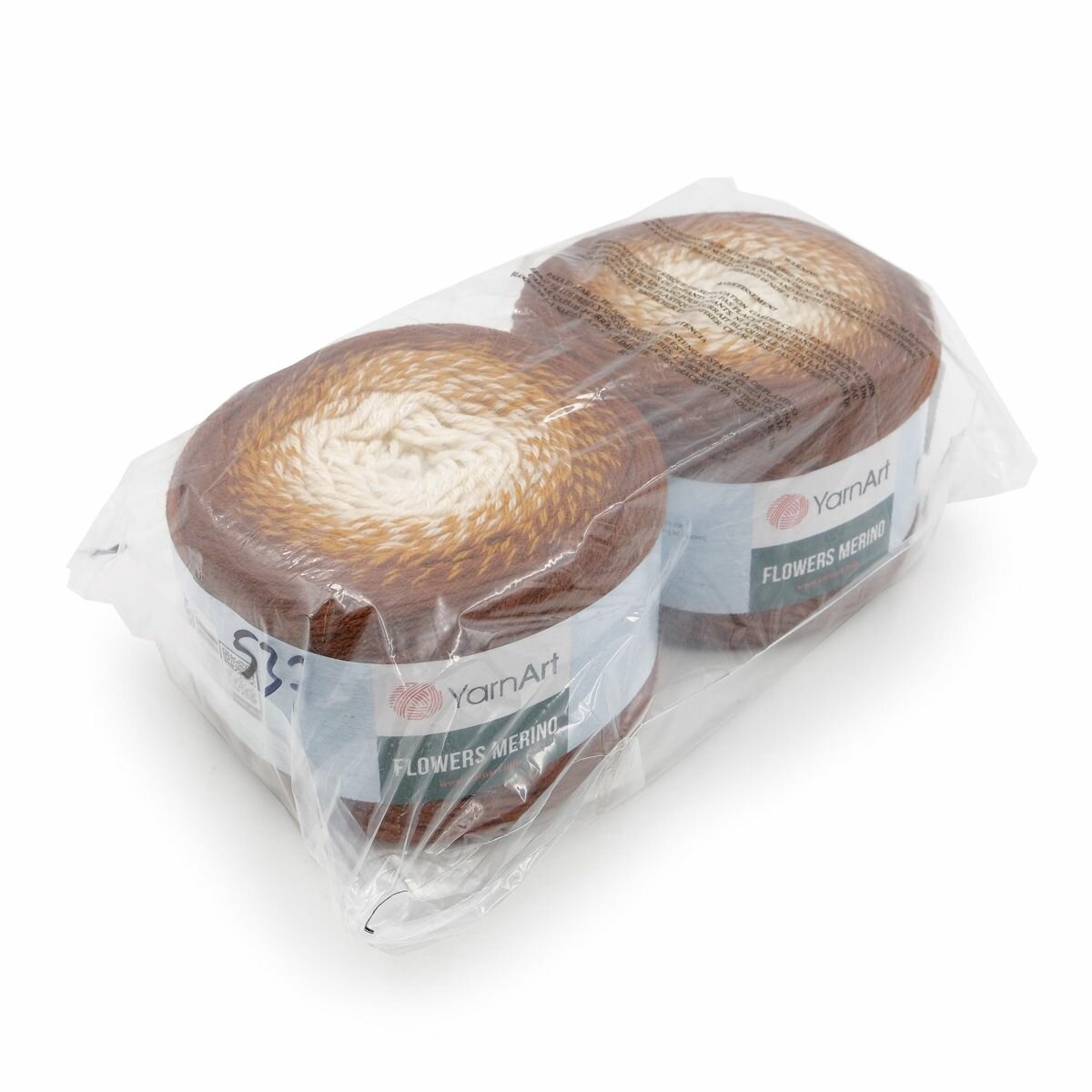 Пряжа Yarnart Flowers Merino шоколад-горчица-бежевый (537), 25%шерсть/75%акрил, 590м, 225г, 2шт
