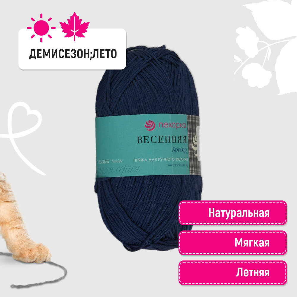Пряжа Пехорка Весенняя темно-синий (004), 100%мерсеризованный хлопок, 250м, 100г, 1шт