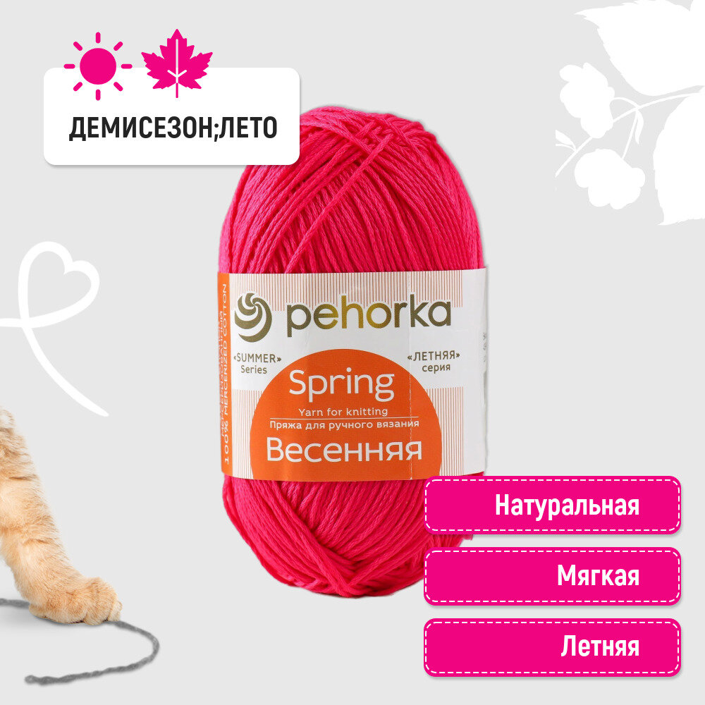 Пряжа Пехорка Весенняя малиновый (439), 100%мерсеризованный хлопок, 250м, 100г, 1шт
