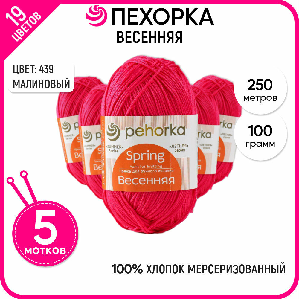 Купить Пряжа для вязания Пехорка 'Весенняя', 100г, 250м (100% мерсеризованный хлопок) (439-Малиновый), 5 мотков