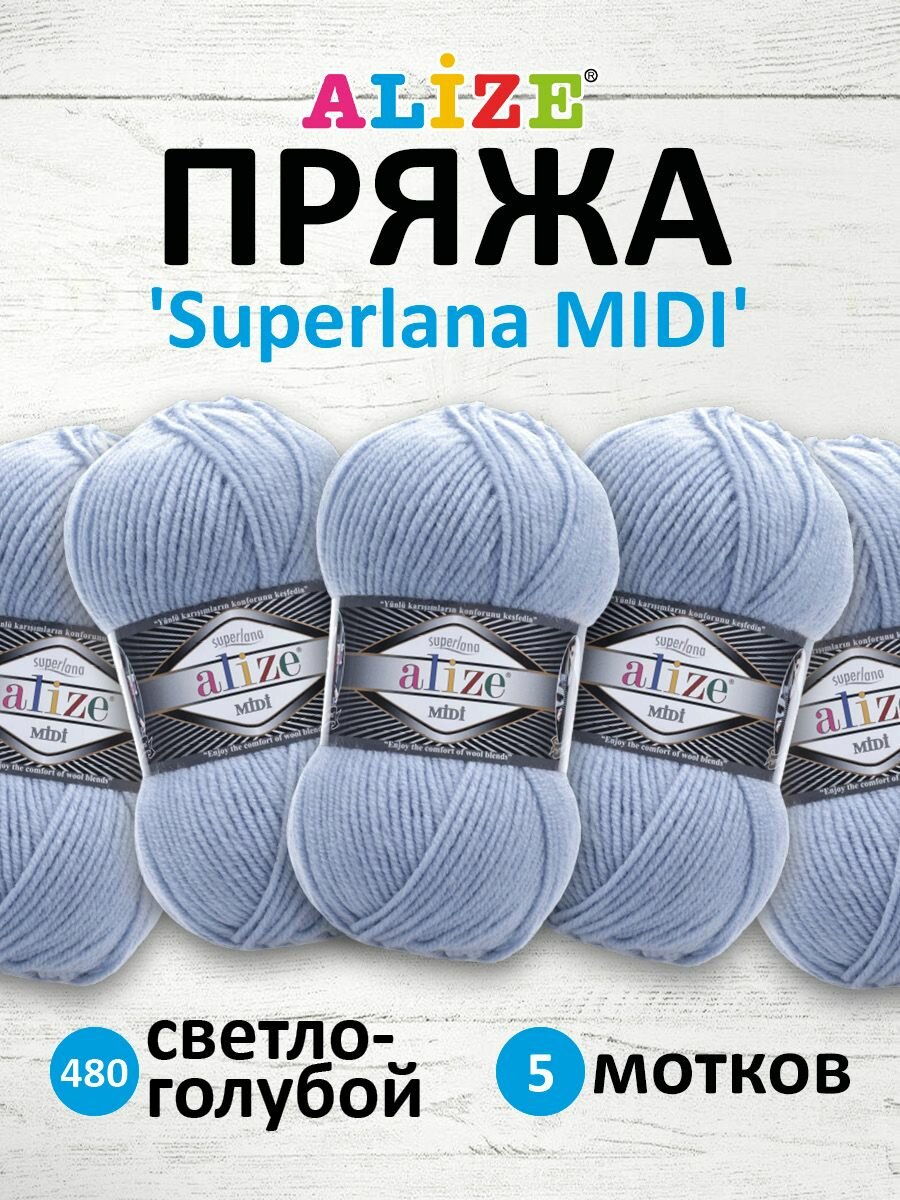 Купить Пряжа для вязания ALIZE 'Superlana MIDI', 100г, 170м (25% шерсть, 75% акрил) (480 светло-голубой), 5 мотков