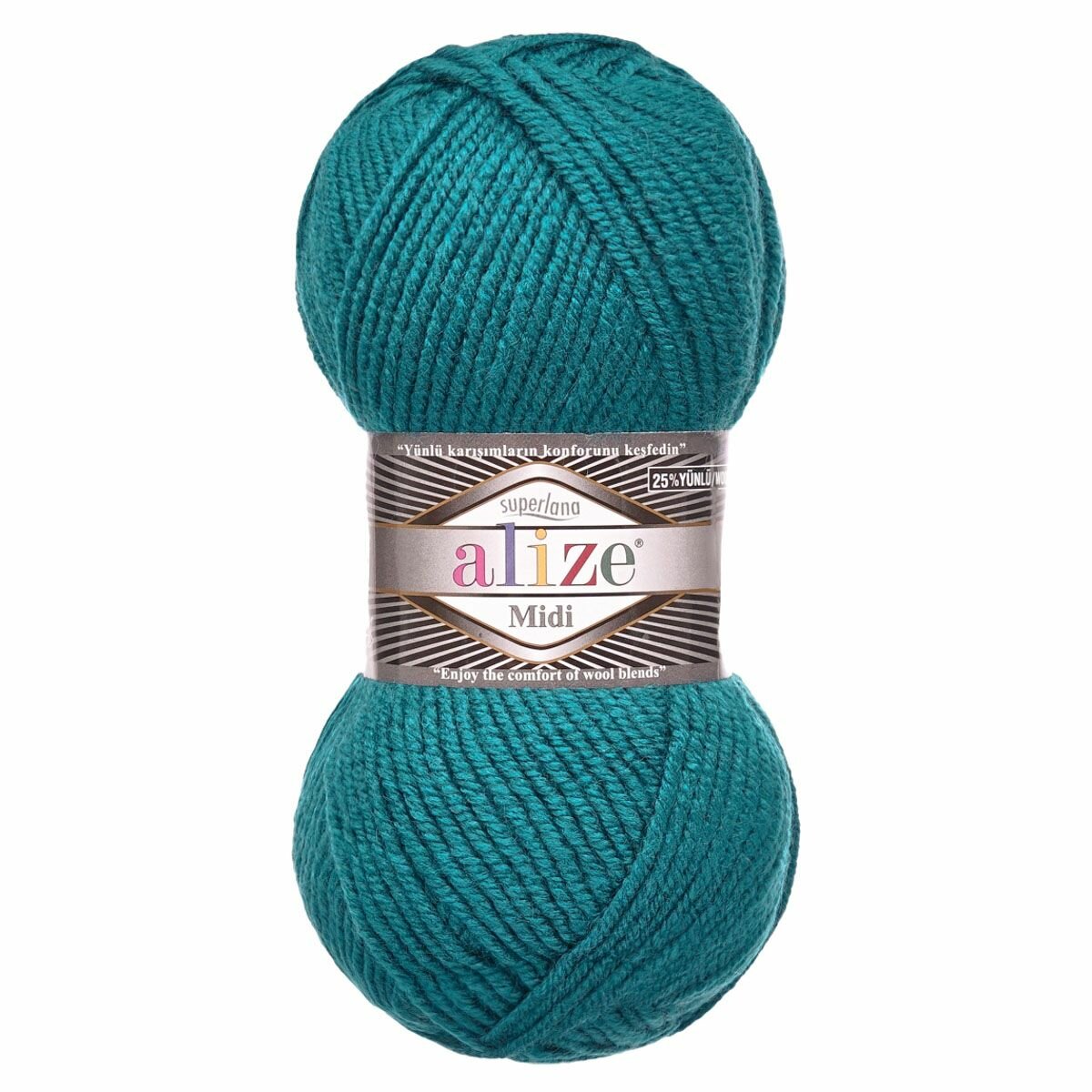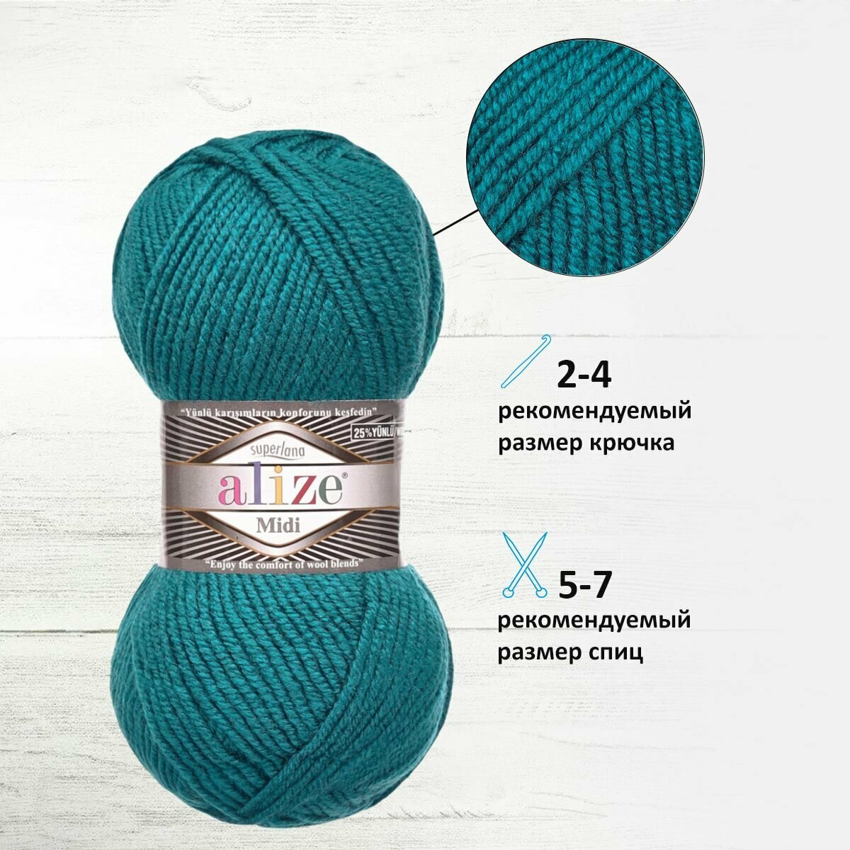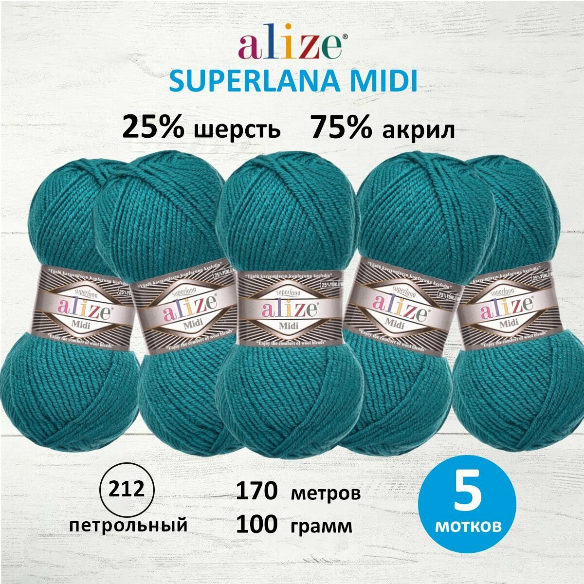 Пряжа ALIZE SUPERLANA MIDI, петрольный - 212, 25% шерсть, 75% акрил, 5 мотков, 100 г, 170 м.