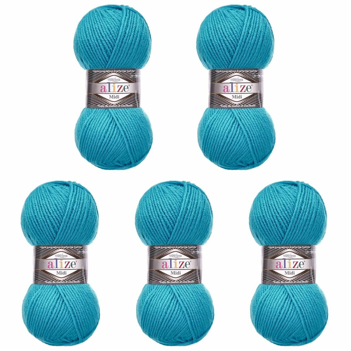 Купить Пряжа Alize Superlana Midi бирюзовый (484), 25%шерсть/75%акрил, 170м, 100г, 5шт