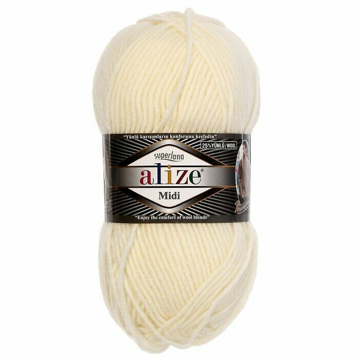 Купить Пряжа Alize Superlana Midi светло-молочный (62), 25%шерсть/75%акрил, 170м, 100г, 1шт