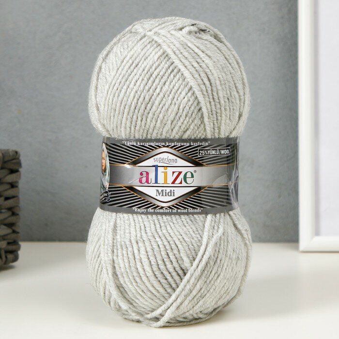 Пряжа ALIZE SUPERLANA MIDI, серый - 87, 25% шерсть, 75% акрил, 5 мотков, 100 г, 170 м.