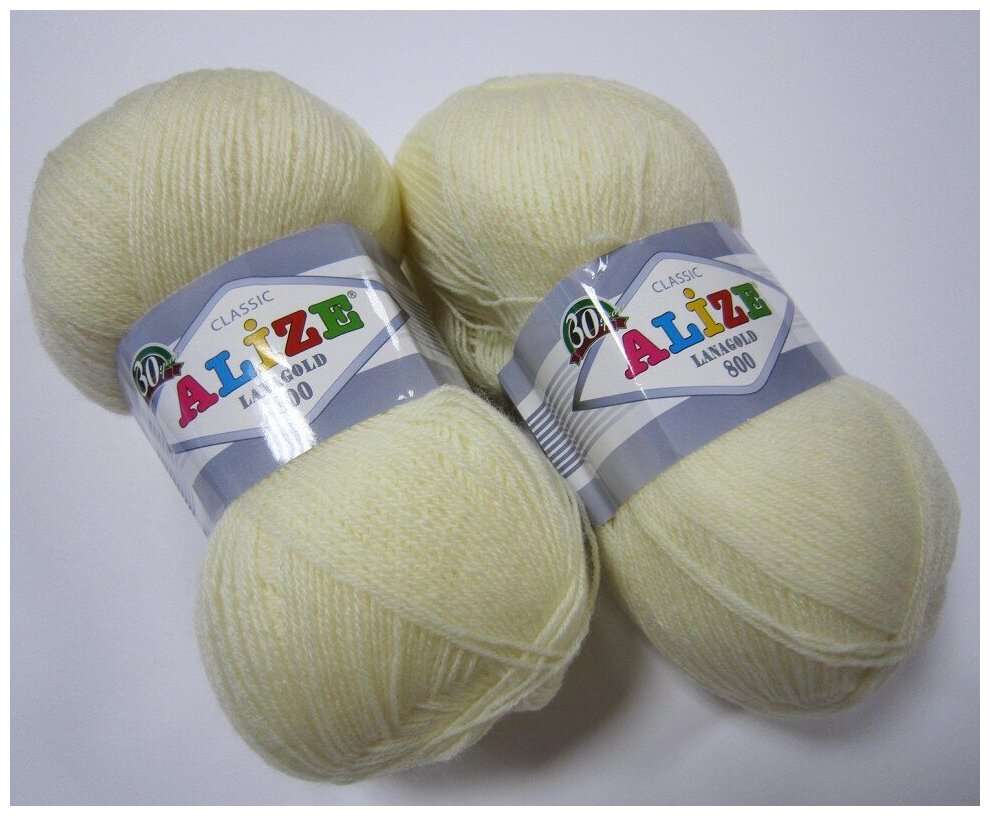 Пряжа Alize Lanagold 800 (Ланаголд 800) - 5 мотков Цвет: 62 молочный (Ланаголд 800) 49% шерсть, 51% акрил 100г 730м