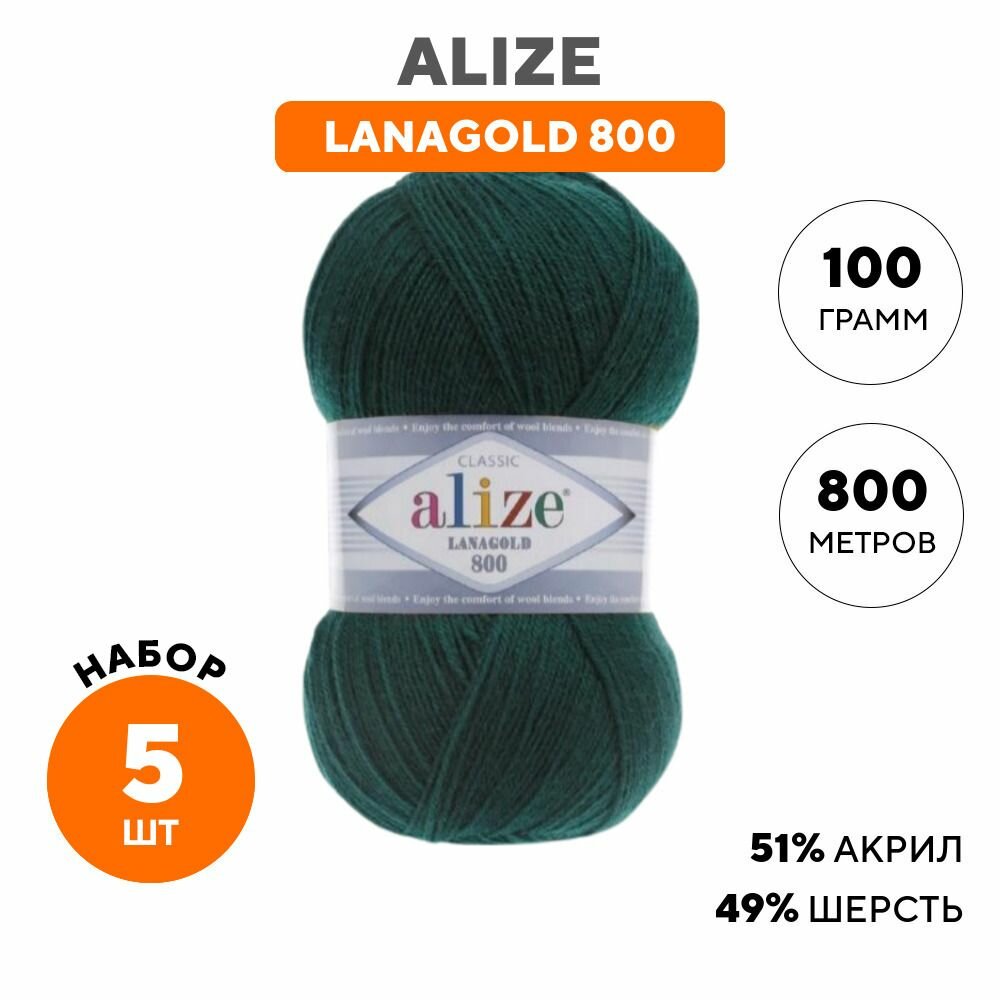 Пряжа для вязания ALIZE 'Lanagold 800', 100г, 730м (49% шерсть, 51% акрил) (426 темно-зеленый), 5 мотков