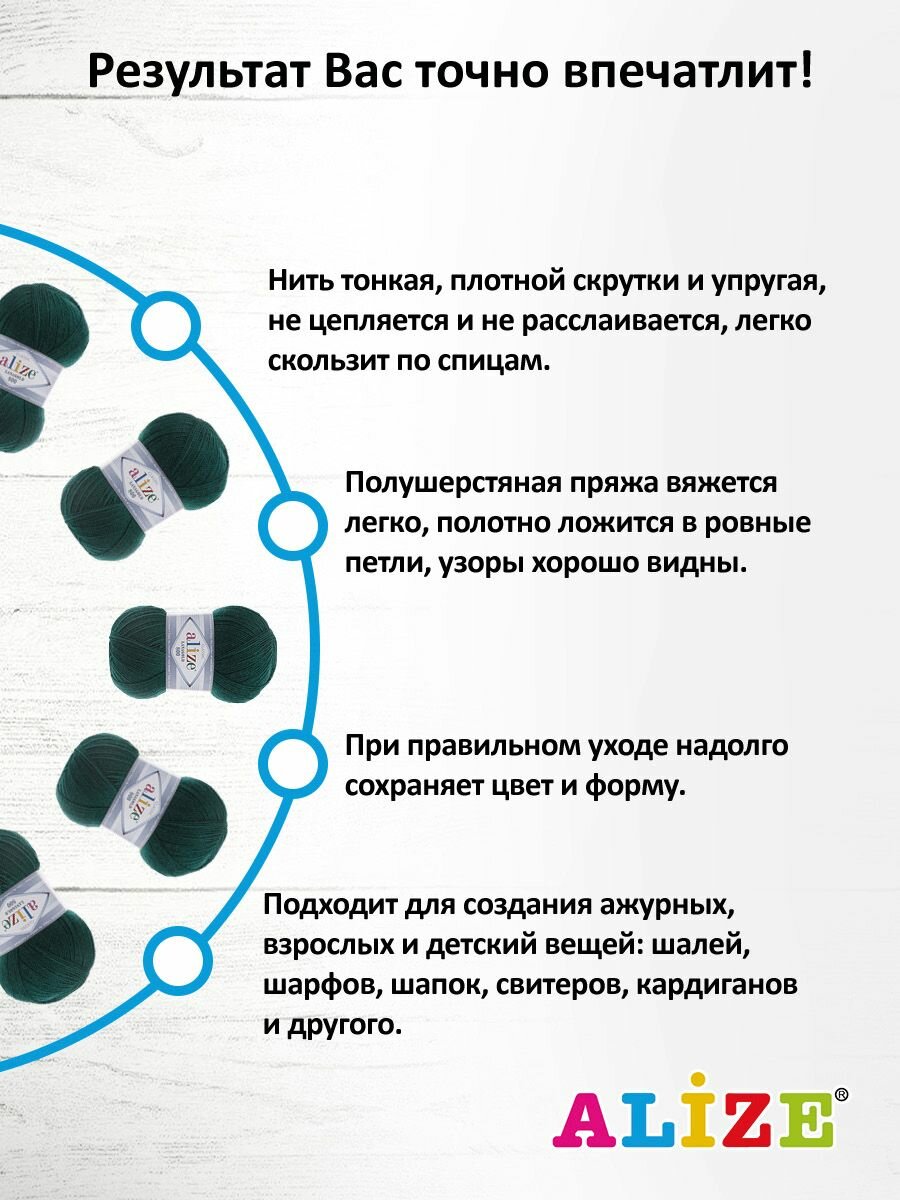 Пряжа Alize Lanagold 800 (Ланаголд 800) - 5 мотков Цвет: 426 темно-зеленый (Ланаголд 800) 49% шерсть, 51% акрил 100г 730м