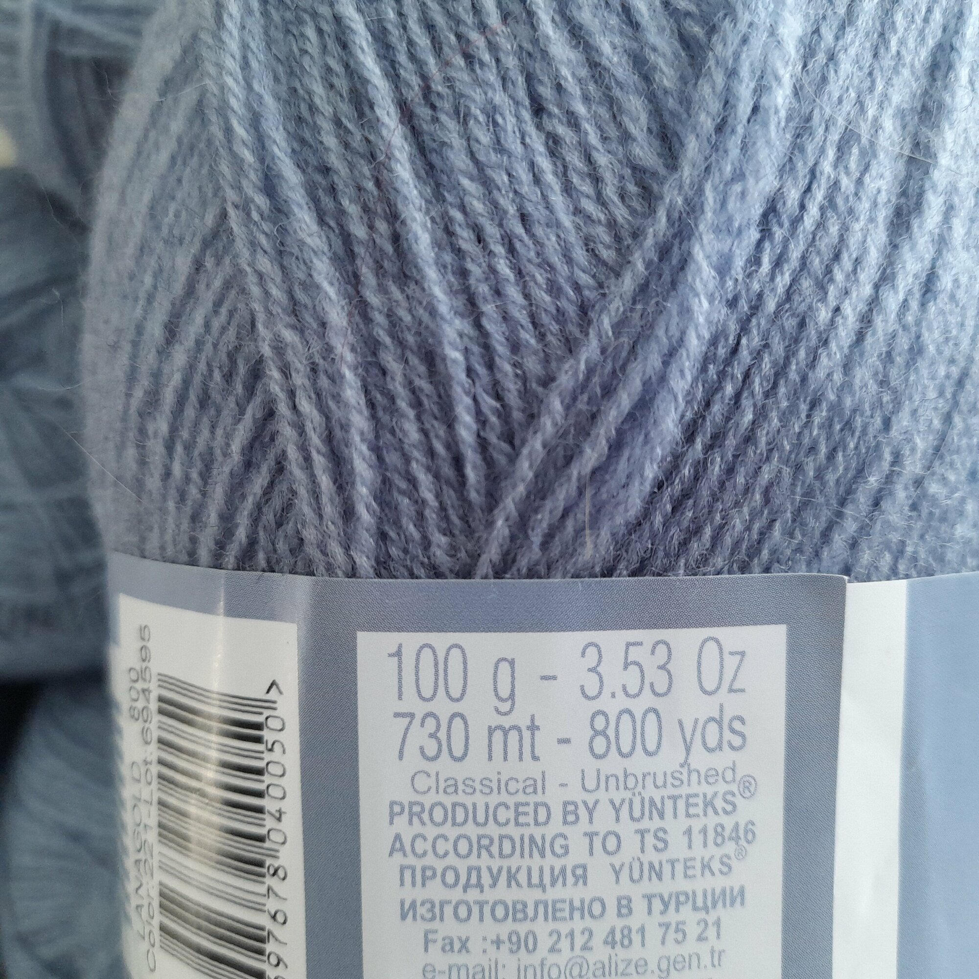 Пряжа Alize Lanagold 800 (Ланаголд 800) - 1 моток Цвет: 40 голубой 49% шерсть, 51% акрил 100г 730м