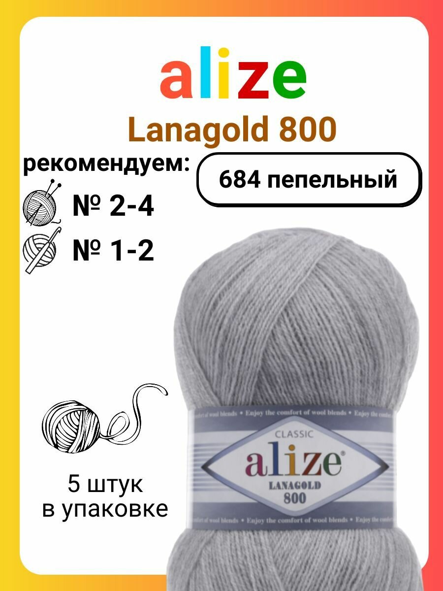 Купить Пряжа для вязания ALIZE 'Lanagold 800', 100г, 730м (49% шерсть, 51% акрил) (684 пепельный меланж), 5 мотков