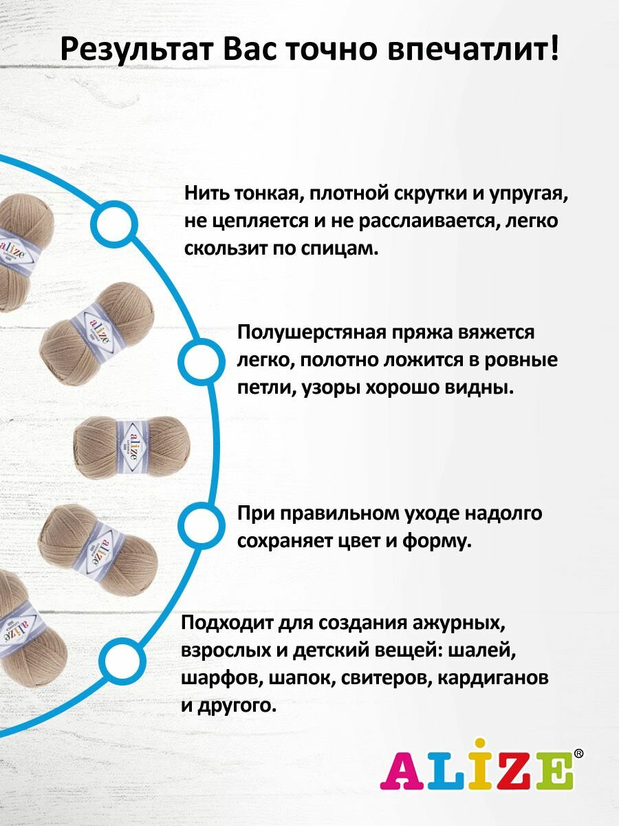 Пряжа Alize Lanagold 800 (Ланаголд 800) - 1 моток Цвет: 62 молочный 49% шерсть, 51% акрил 100г 730м