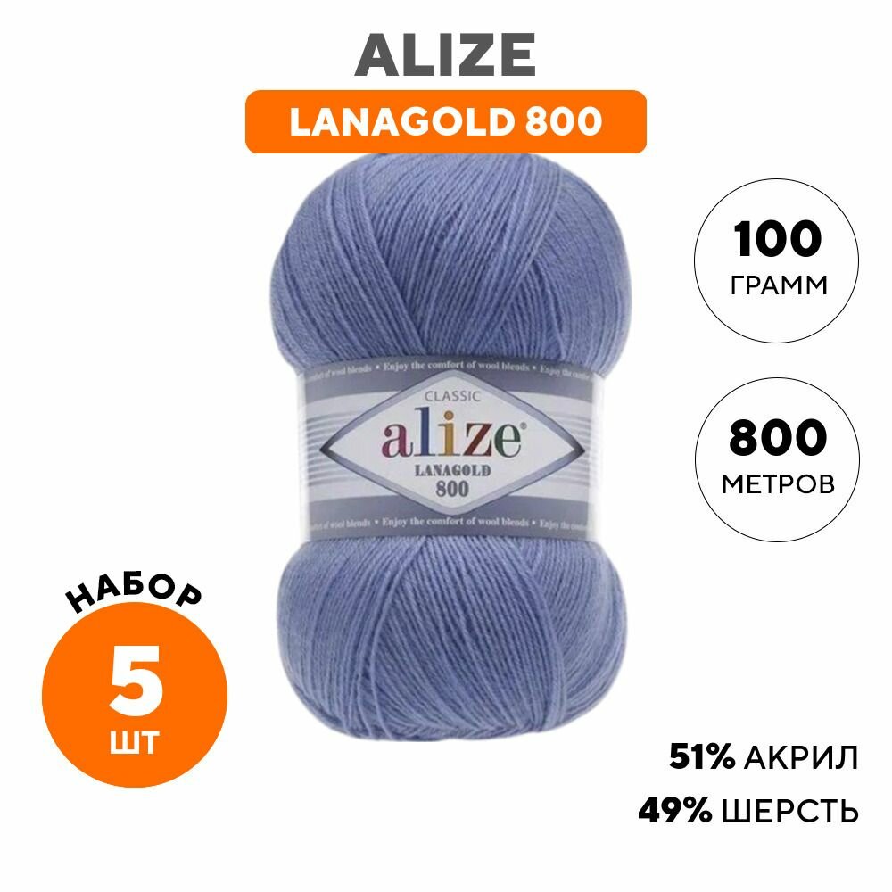 Пряжа Alize Lanagold 800 голубой (40), 51%акрил/49%шерсть, 800м, 100г, 5шт